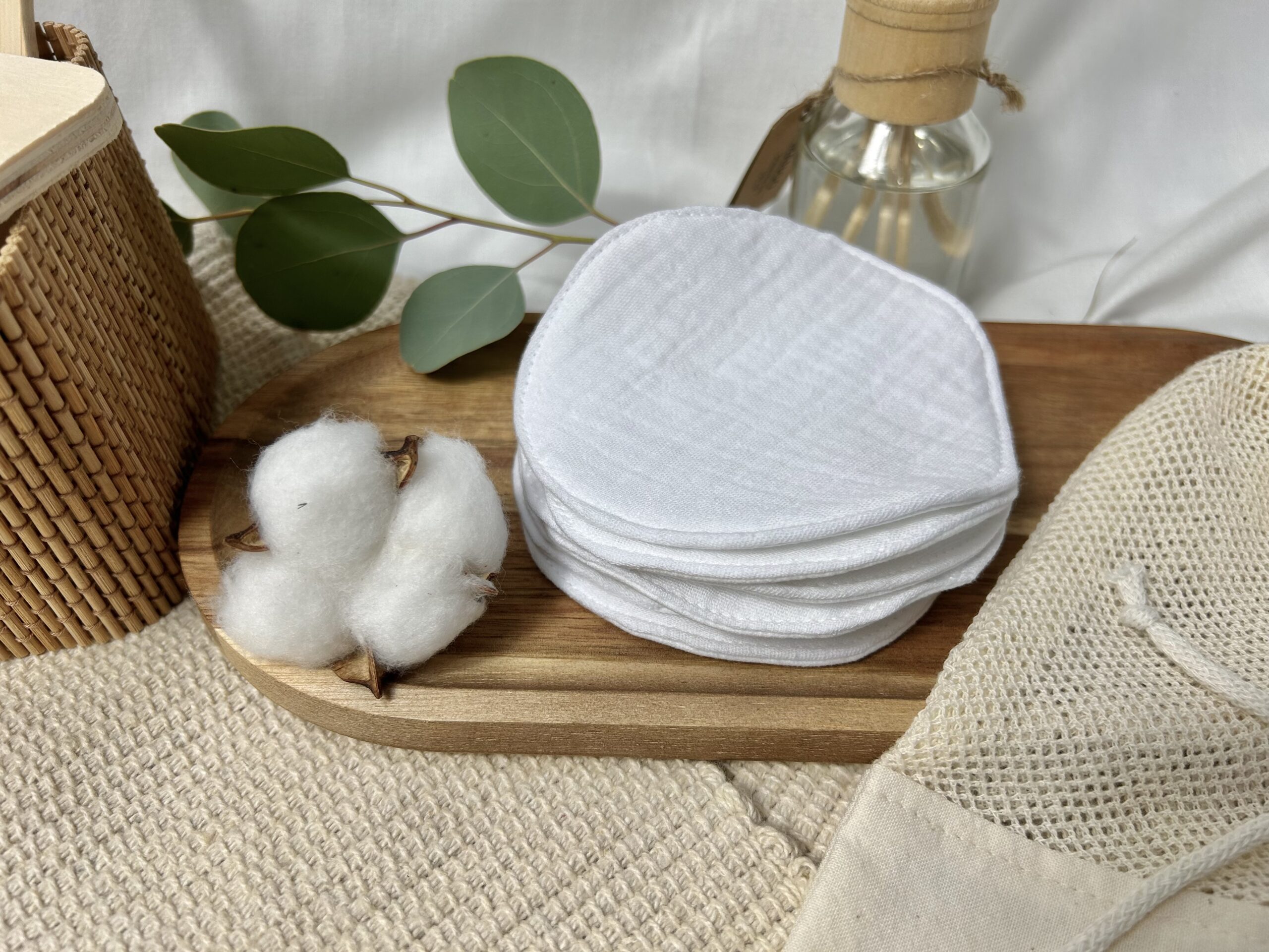 Wielorazowe płatki do demakijażu – 7 szt – kolor biały + bawełniany worek
